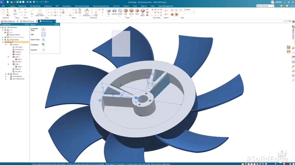 Solid Edge 是一款經(jīng)濟(jì)實(shí)惠、易于使用的軟件工具產(chǎn)品組合,能夠輕松應(yīng)對(duì) 3D 設(shè)計(jì)、仿真、制造、數(shù)據(jù)管理等產(chǎn)品開(kāi)發(fā)流程的各個(gè)方面。Solid Edge 通過(guò)同步建模技術(shù),將直接建模的快速和簡(jiǎn)易性與參數(shù)化設(shè)計(jì)的靈活性和可控性相結(jié)合。