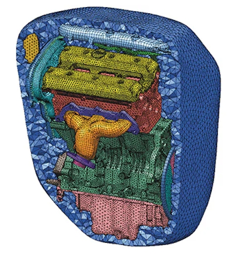 聲學(xué)邊界元法通常用于解決外場聲學(xué)問題,對于聲學(xué)有限元法難以建模的復(fù)雜幾何體更是理想選擇。聲學(xué)邊界元法只需要幾何體的外表面網(wǎng)格,因此有助于簡化外部聲學(xué)仿真。這不僅簡化了建模過程,還降低了仿真模型中的自由度,使分析變得更輕松。